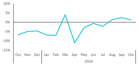 Down from +2.5% in September, the rise represents the biggest increase of the four nations and is better than the UK average decrease of 1.1% year-on-year.