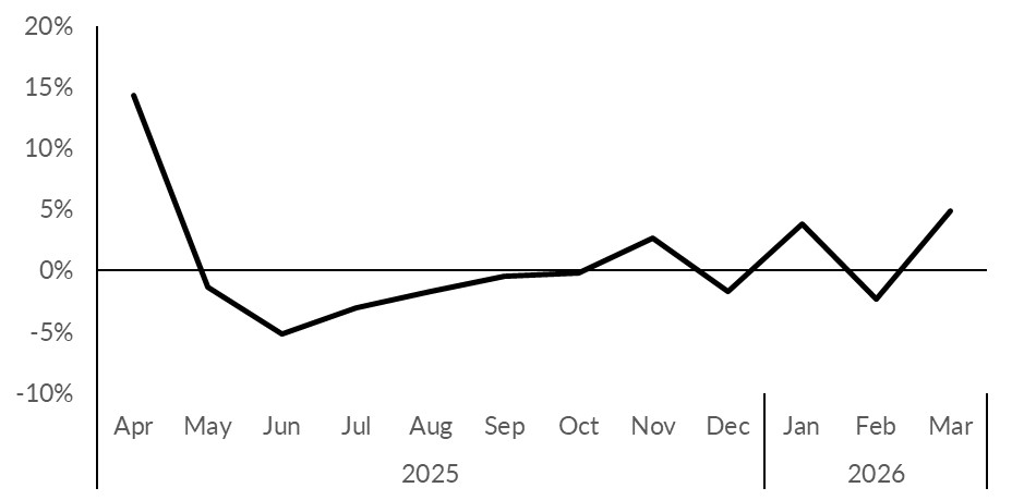 “Without the final week’s Easter bump, March would likely have been far more subdued – raising questions over how April may perform, particularly against much stronger comparables last year.