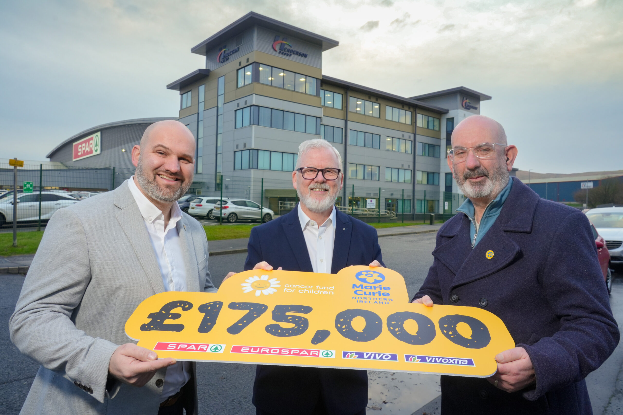 Pictured (from left) are Phil Alexander from Cancer Fund for Children, Paddy Doody from Henderson Group and Conor O’Kane from Marie Curie as they celebrate a fundraising total of £175,000 from Henderson Wholesale’s Killarney conference