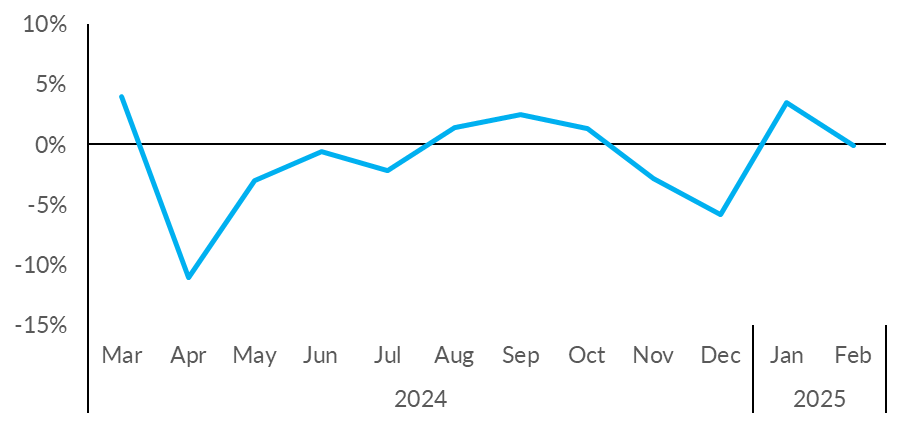 It represents a mixed picture for retail, as shopping centre footfall saw an increase of 1.1% in February (year-on-year). Footfall in Belfast also increased in February, by 0.1% (year-on-year).