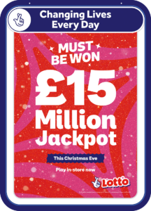This year’s festive draw line-up includes a £15 million Lotto ‘Must Be Won’ draw on Christmas Eve, supported by a nationwide advertising campaign across TV, press, online, and digital billboards from 18th December. Retailers could see Lotto sales boosted by up to 178%* for the draw and are advised to site POS prominently from 15th December and suggest tickets to customers.