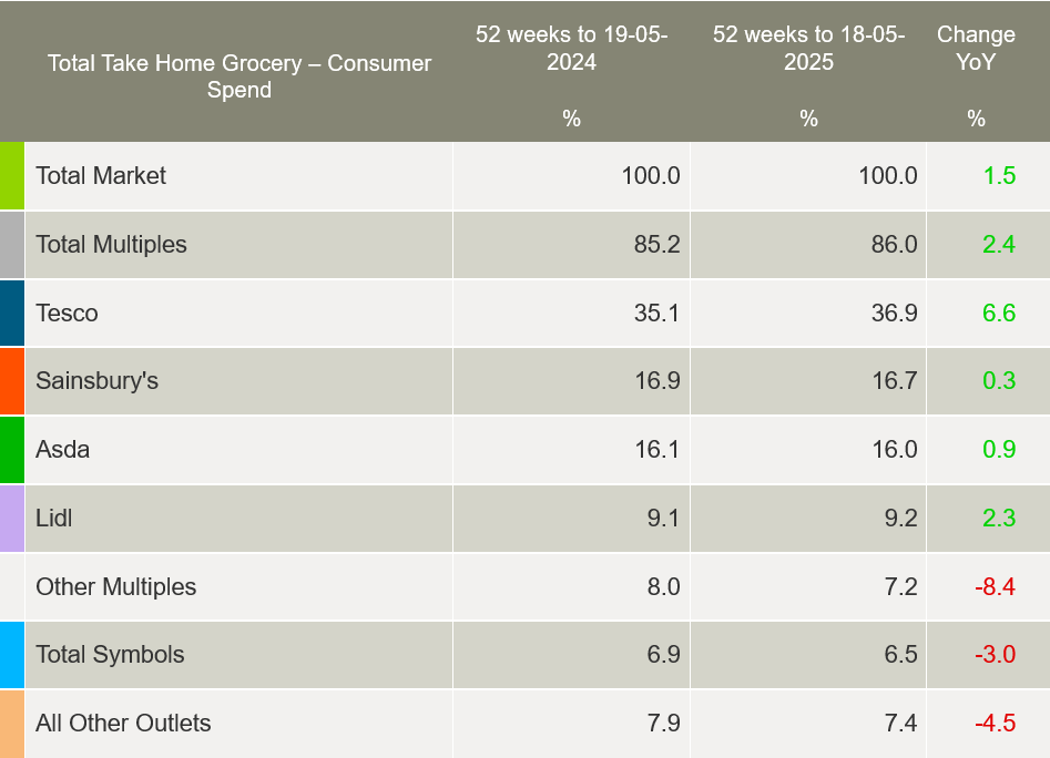 In the year to 18th May 2025, £4.4 billion passed through the tills of grocers in Northern Ireland, an increase of 1.5% compared to last year.