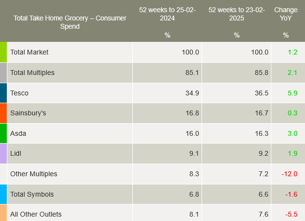 A total of £4.3 billion passed through tills in Northern Ireland in the year up to 23rd February, representing an increase of 1.2% compared to last year.