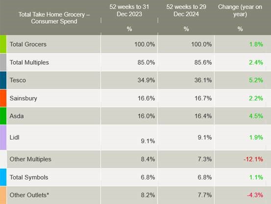 The latest figures from analysts, Kantar represent the year to 29th December 2024.
