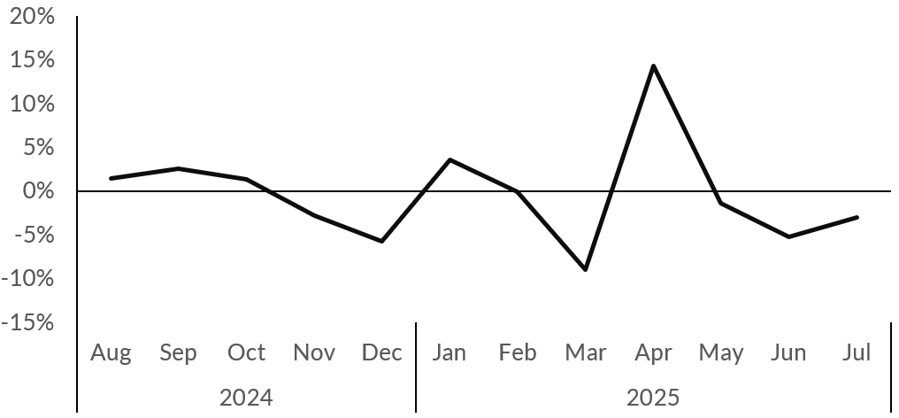 The latest figures from NIRC-Sensormatic show that footfall across Northern Ireland decreased by 3.0% in July (year-on-year), up from -5.2% in June, while shopping centre footfall decreased by 4.1% in July (year-on-year), up from -6.0% in June.