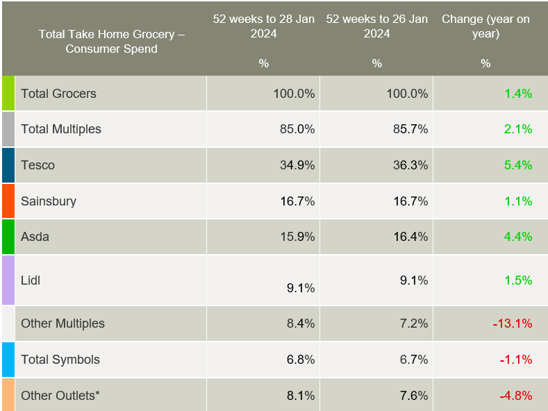 A total of £4.3 billion passed through the tills of grocers in Northern Ireland in the year to 26th January 2025, representing an increase of 1.4%, compared to last year.