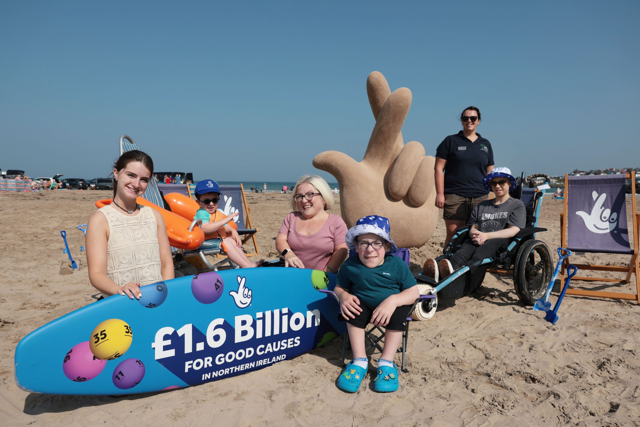One of the beaches that has been made inclusive is Portstewart Strand, which has been named the best beach in the UK in 2025 by the Sunday Times. The National Lottery and the Mae Murray Foundation joined with MLA Maurice Bradley on Portstewart Strand to reveal a striking 7ft sand sculpture representing the iconic National Lottery ‘Fingers Crossed’ symbol. Part of a series of National Lottery Fingers Crossed installations across the UK, the sand sculpture symbolises the hope and optimism the funding to Good Causes provides in Northern Ireland.